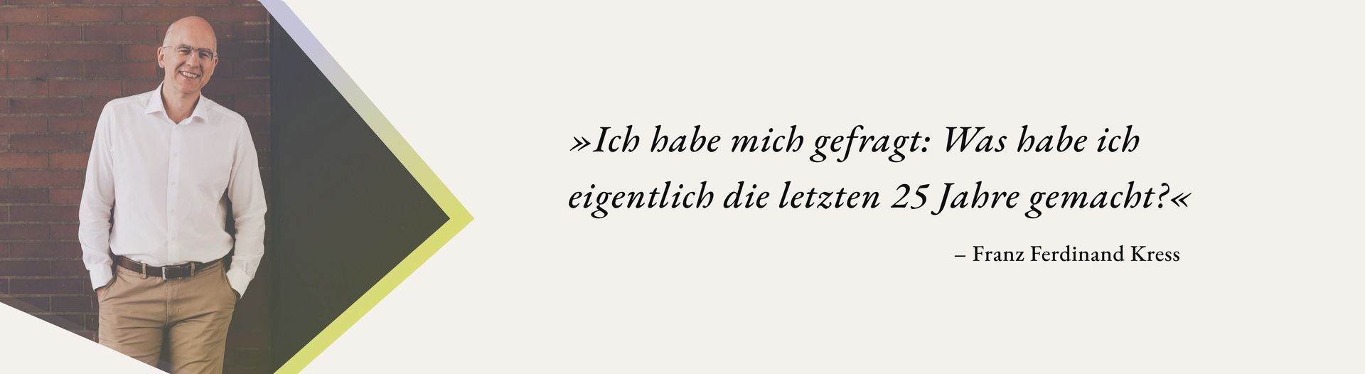 Franz-Ferdinand Kress ist vieles zugleich: Interimmanager mit langjähriger Erfahrung, Unternehmensberater, Buchautor und Gründer der Initiative Glück im Quartier. Er kennt die Welt der Zahlen, Prozesse und Strategien. Und er weiß, wo sie an ihre Grenzen stößt.